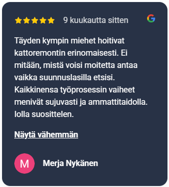 Huoleton katto vuosikymmeniksi eteenpäin! Tarjoamme helpon ja vaivattoman kattoremontin kuntokartoitus -palvelun ILMAISEKSI. Kartoitus sisältää arvion kattoremontin tarpeesta sekä hinnan kattoremontille.