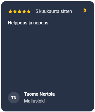”Ei tarvinnut minun tehdä mitään. Helppo ja hyvä kokonaisuus. Olen tyytyväinen ja voin suositella!”